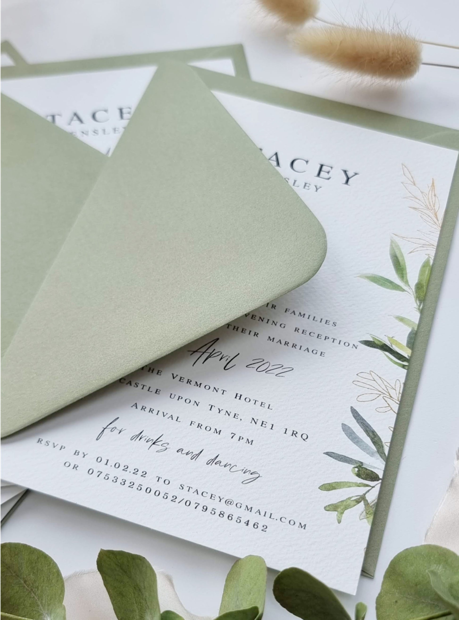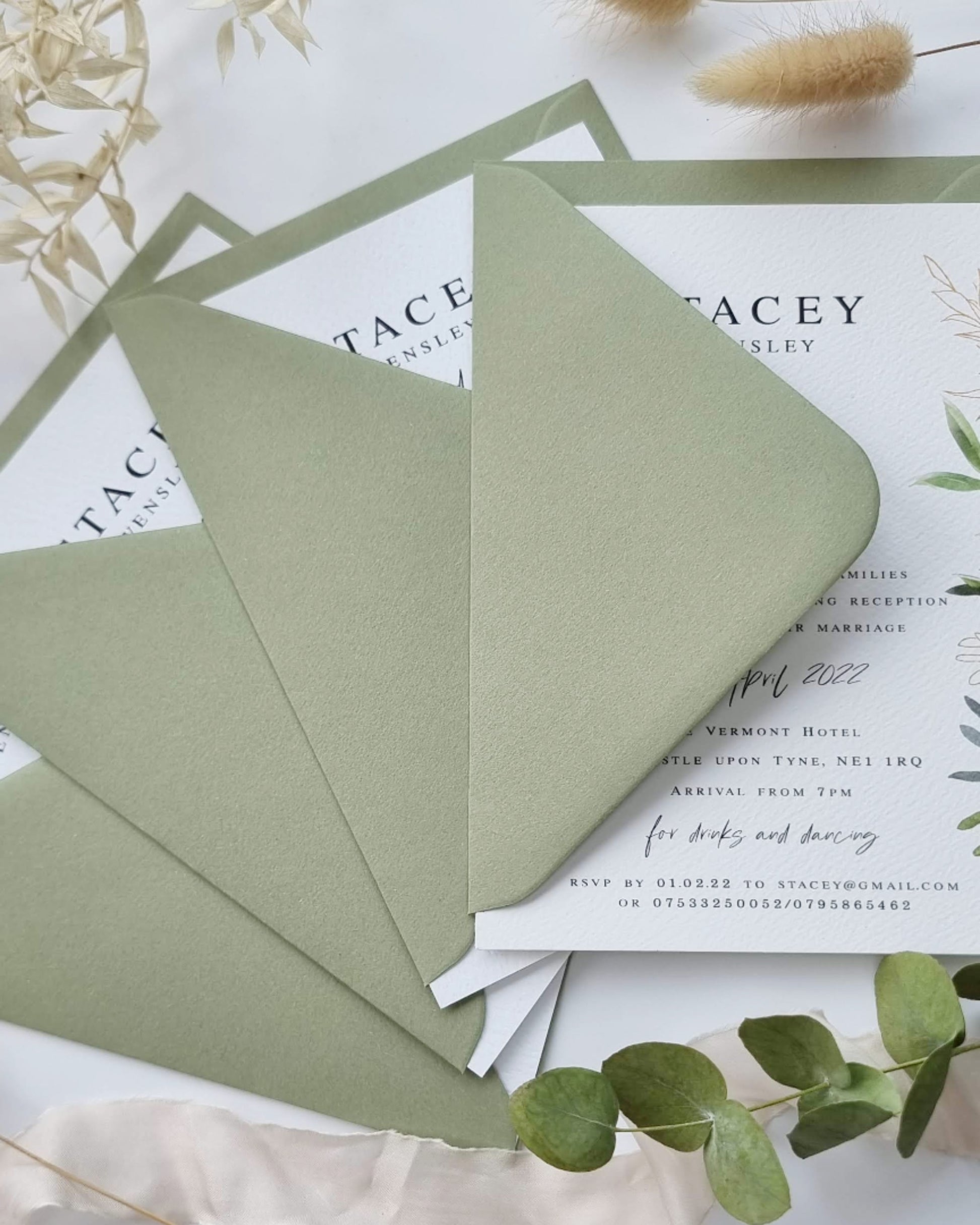 Sienna is pictured with sage green envelopes on the main picture. If you'd like to use an alternative colour please see the pictures for options and select your choice.